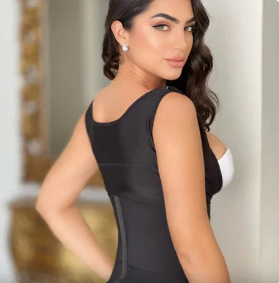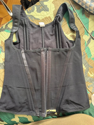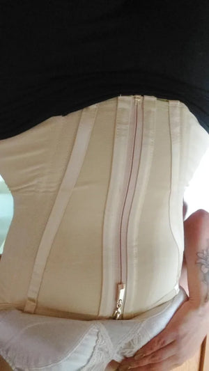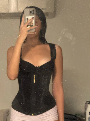 Corsetul are fermoar și cârlige reglabile pentru a se adapta perfect la forma corpului tău, oferind susținerea dorită.